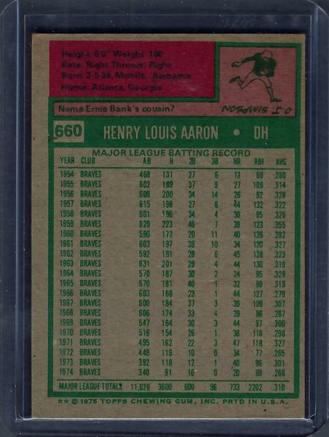 1975 Topps blank Hank Aaron #660
