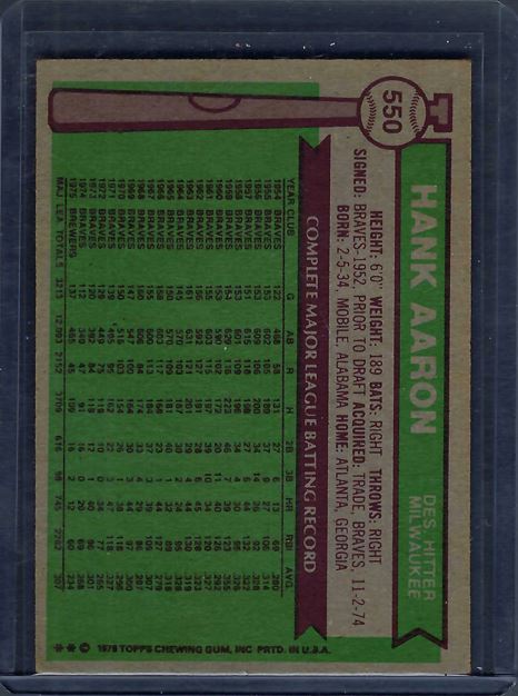1976 Topps blank Hank Aaron #550