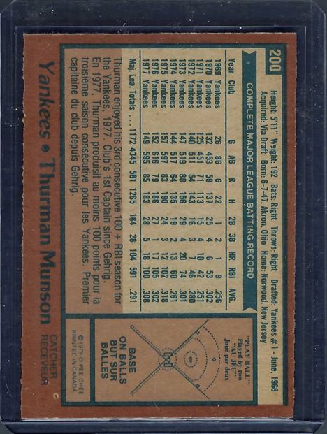 1978 O-Pee-Chee blank Thurman Munson #200