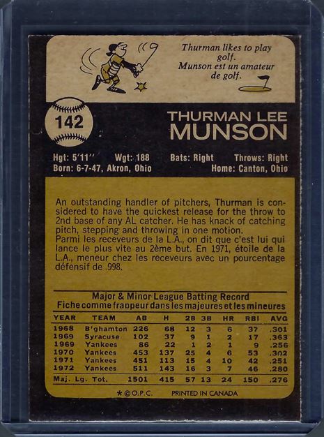 1973 O-Pee-Chee blank Thurman Munson #142