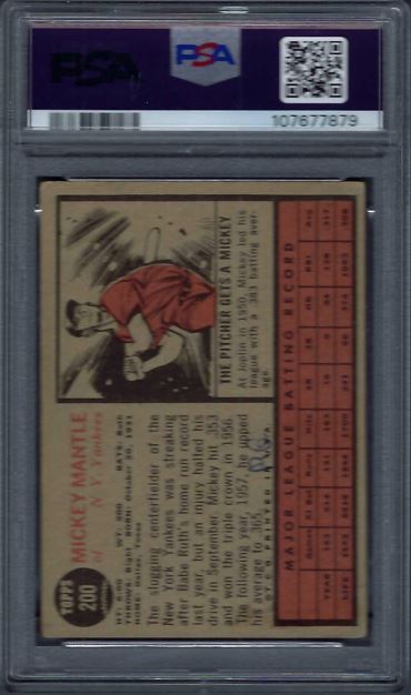 1962 Topps blank Mickey Mantle #200